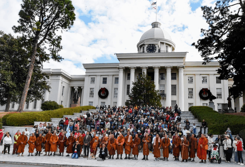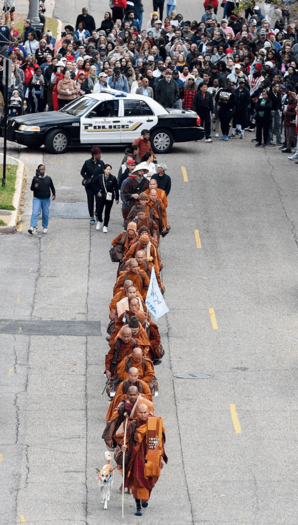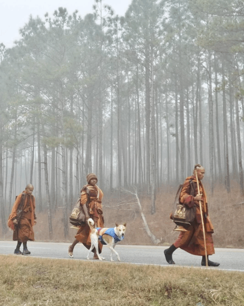 The walk unfolded throughout the holidays – a season when themes of peace, reflection, generosity, and humanity are already present. The monks didn’t interrupt the cultural moment. They aligned with it. That alignment made the message land more deeply – without force, without commentary, without confrontation.